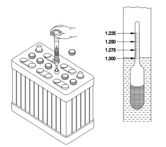 Q15. What is the battery charge rate indicates by the floating level of hydrometer?