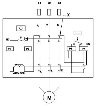 Q1. What is the name of component marked as X in motor starter? / मोटर स्टार्टर में X के रूप में चिह्नित घटक का नाम क्या है?